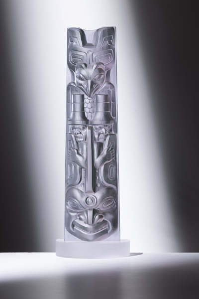 Killer Whale Totem Seattle based Preston Singletary’s glass sculpture typically references elements from his native Tlingit culture. In this piece, he has created a totemic piece based upon the much venerated killer whale. |